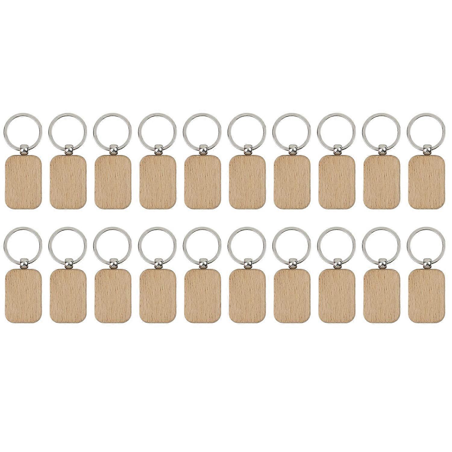 20Pcs Blank Wooden Wooden Keychain Diy Wooden Keychain Key Tag Anti-Lost Wood Accessories Gift