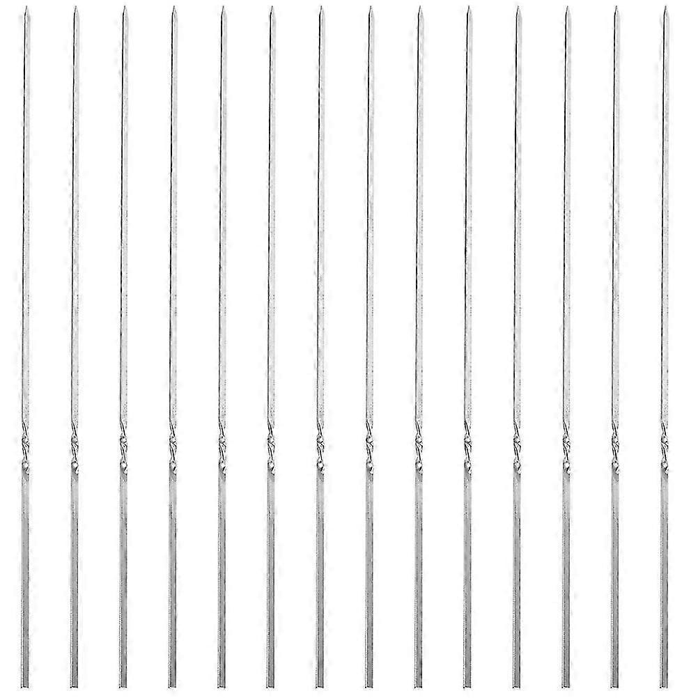 Description Are you looking for practical barbecue skewer? This will be your good choice. Made of stainless steel materials, it has excellent durability and practicality. The unique design makes it easy to use, can help you easily connect food, and will provide you with a more enjoyable barbecue experience. And the flat design make you skewer food more convenient. Features -Color: As shown -Material:Stainless steel - Size: 40.00X0.35X0.30cm/15.72X0.14X0.12in - The barbecue skewer is made of stainless steel, which is non-slip and easy to control, insulated and safe and comfortable to use. -Fine craftsmanship and exquisite details ensure its practicality and popularity. - Unlike bamboo skewers, our metal skewers can be reused after washing. And can be reused for several times. - Suitable for outdoor BBQ party, barbecue, restaurant, camping and picnic, and so on. - The kebabs skewer makes it easier to thread skewers through meat and vegetables without getting hands oily. Package List20 x barbecue skewers