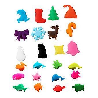 24pcs Silicone Wine Glass Markers Sea Animals and Christmas Theme Wine Identifier Drinking Cup Sign