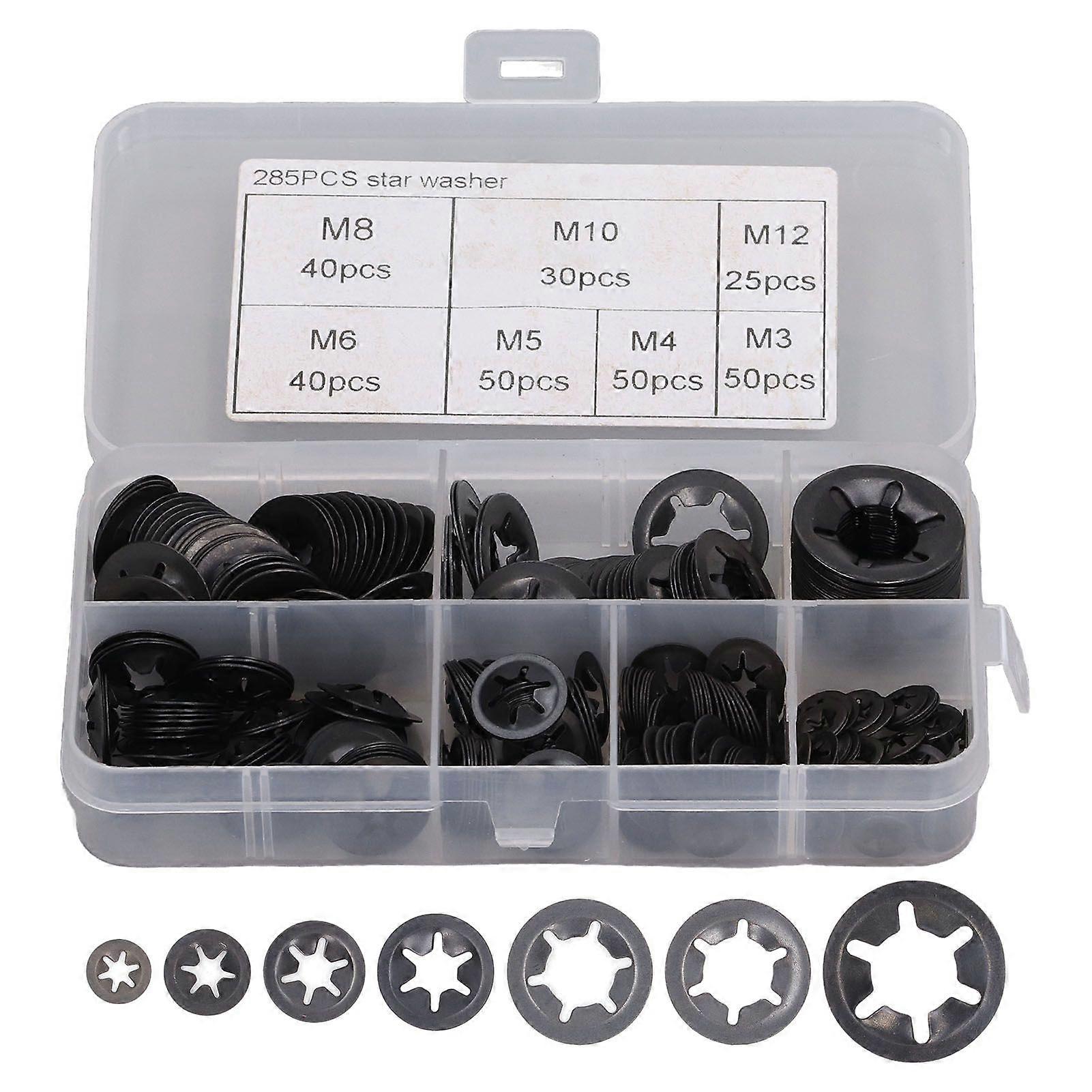 285Pcs Washer Internal Tooth Lock Fastener M3 M4 M5 M6 M8 M10 M12 Set Kit
