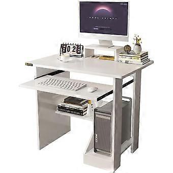 29in Computer Desk with Monitor Stand and Keyboard Tray for Small Space, Wood PC Laptop for Bedroom, Writing Table with Shelves for Kids, White