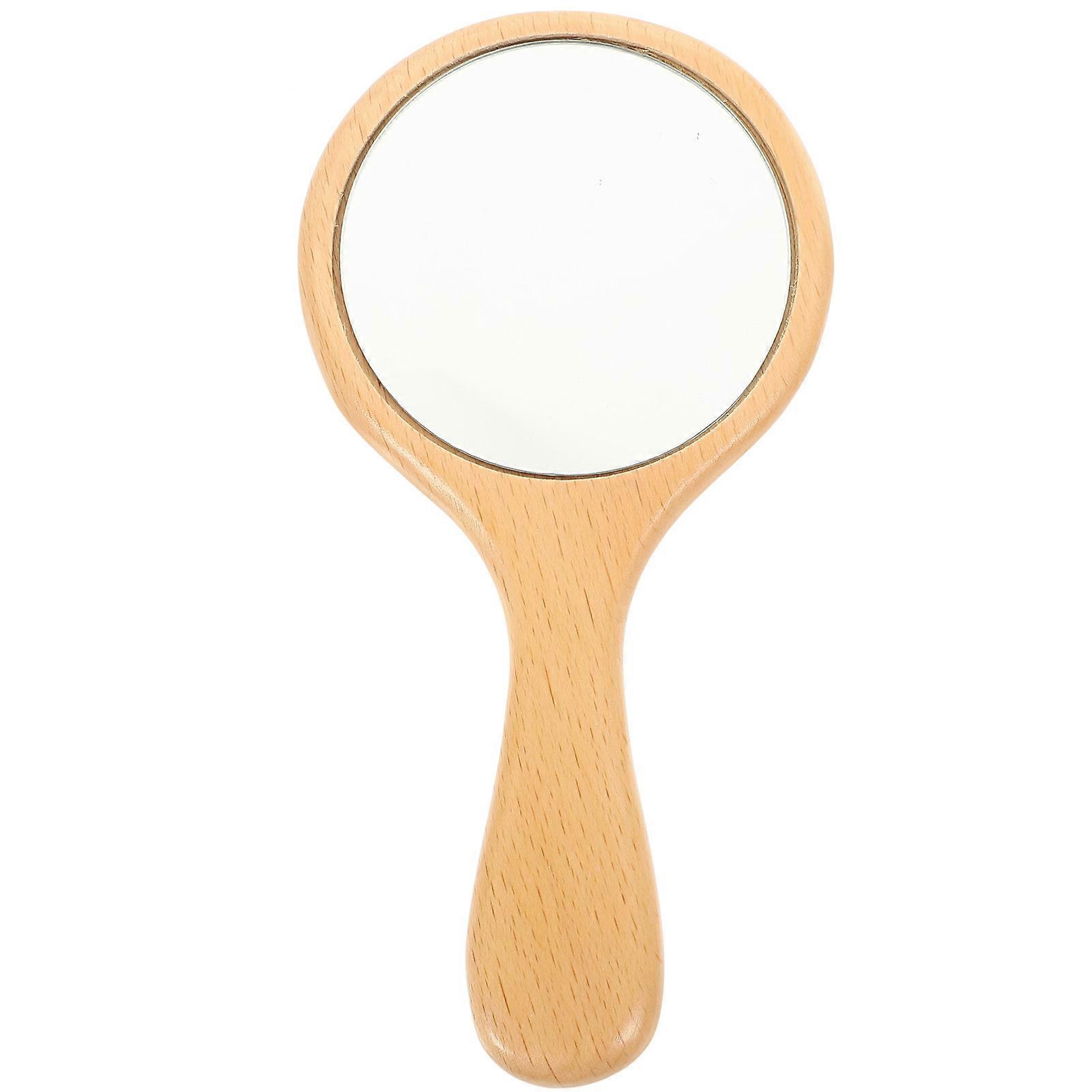 2Pcs Handheld Round Mirror Wooden Makeup Mirror Comfortable Shape For Office Use 18x9cm Chic Design