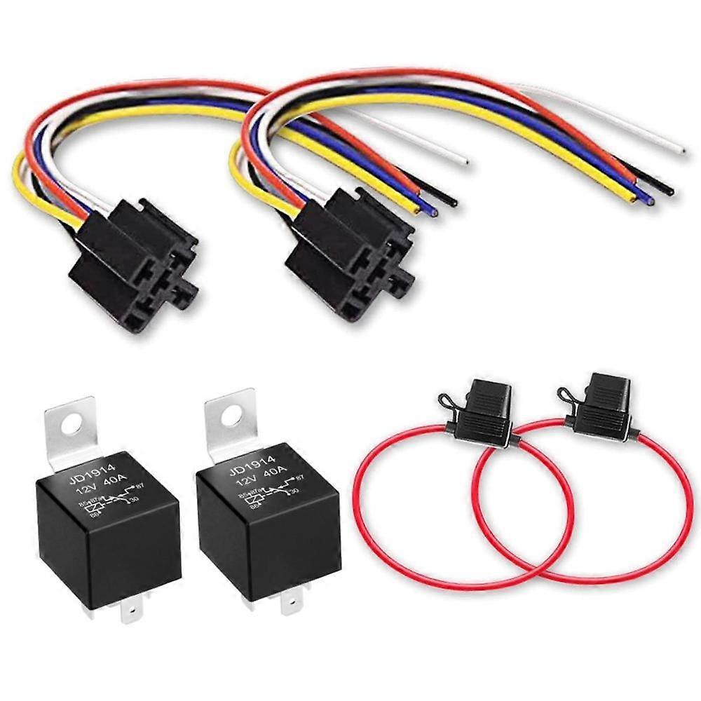 2Pcs Car 5 Pins 30/40A 12V Spdt Relays Kit Spare Parts Relay Harness Sockets