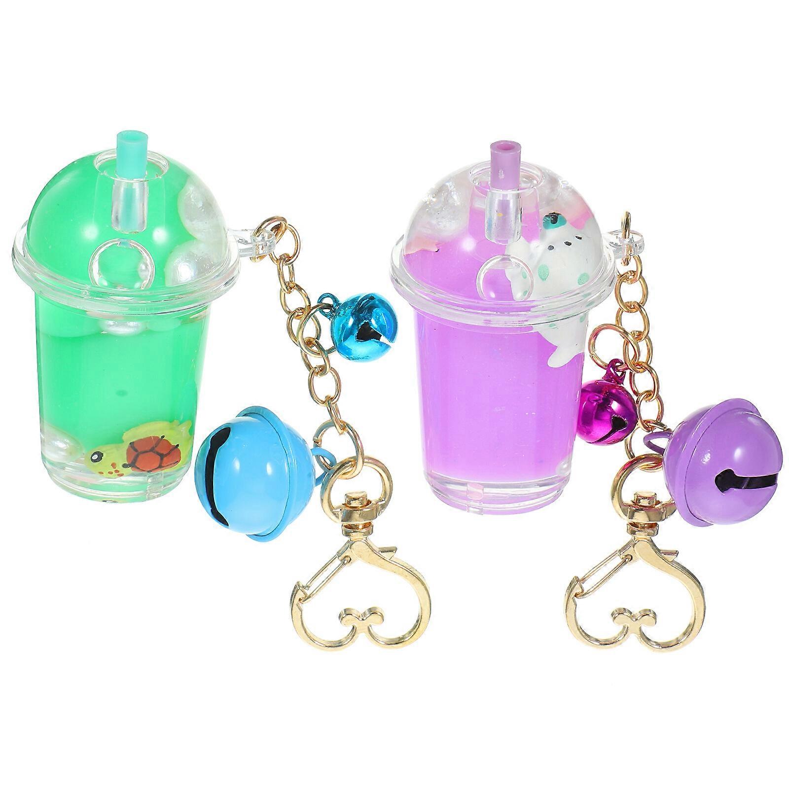 2pcs Lovely Milk Bottle Bell Keychains Keyrings Bag Ornaments Bag Pendants