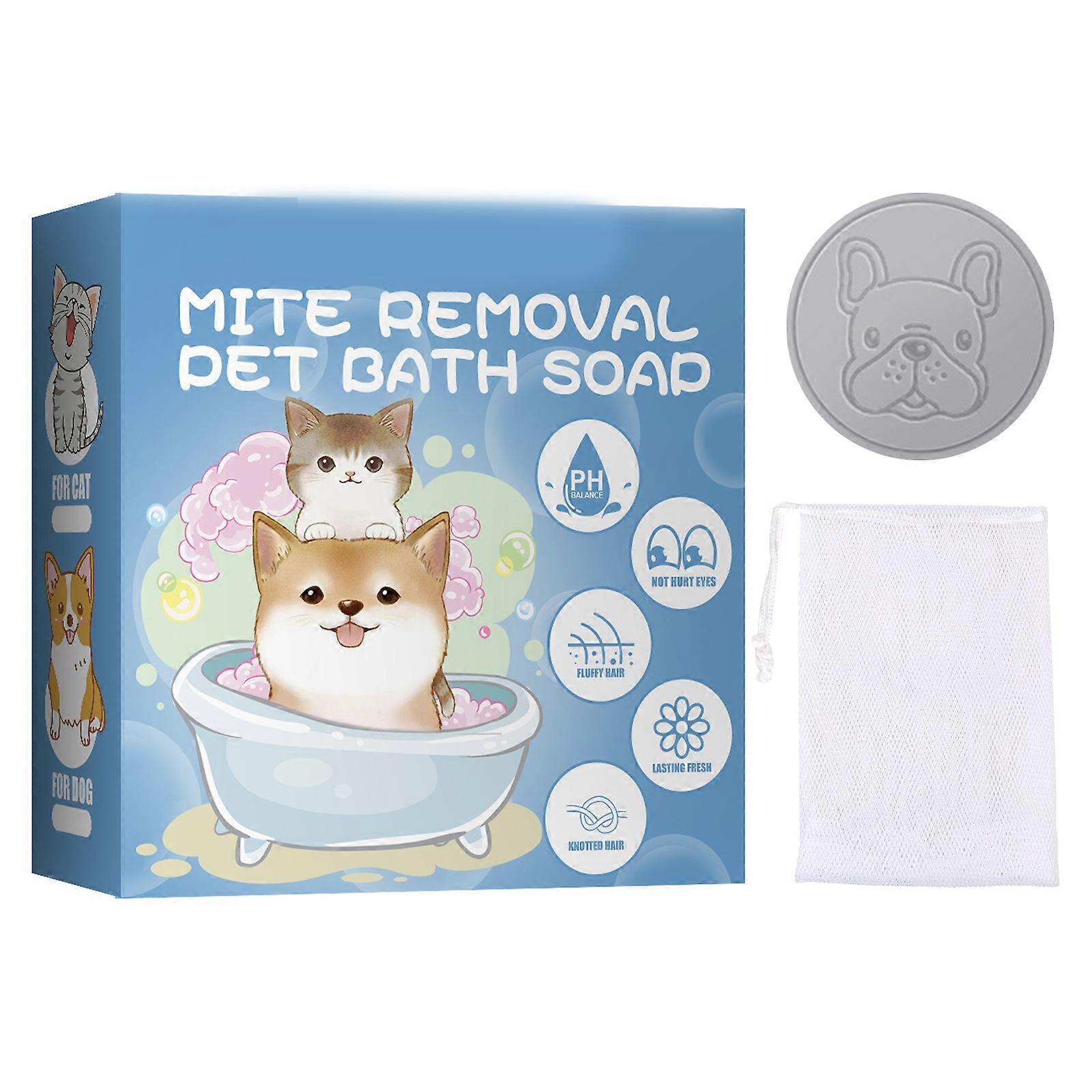 2pcs Pet Mites Removal Bath Washing Soap Bar with Bubble Net Set Anti-Itch Moisturizes Soothes Skin Pet Body Deodorant