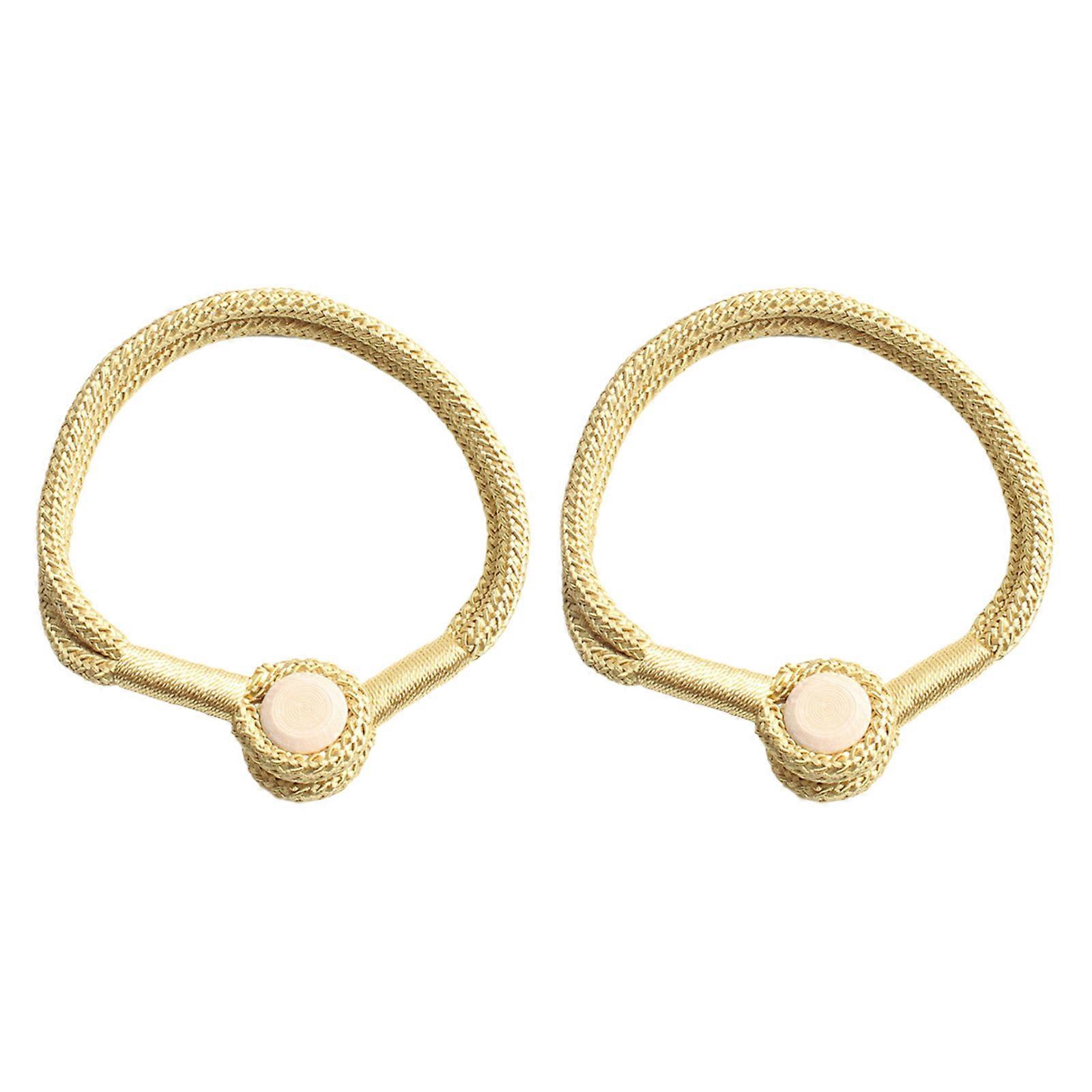 2Pcs Magnetic Curtain Tiebacks Handwoven Cotton Rope Holdbacks for Home or Office Wood Buckles Drapery Holders Tie Backs Yellow