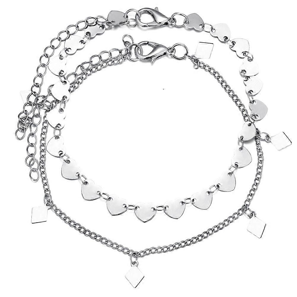 2pcs Retro Love Heart Anklet Square Fashion Alloy Anklet Set Jewelry Gift