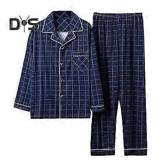 2stk / sæt mænd pyjamas sæt ternet print revers langærmet enkeltradet skjorte elastisk talje lange bukser sæt løs pasform loungewear dragt