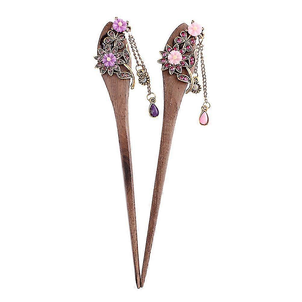 2pcs Wooden Hair Sticks Retro Hairpin Vintage Hairpin Updo Wooden Hair Stick (random Color And Style)
