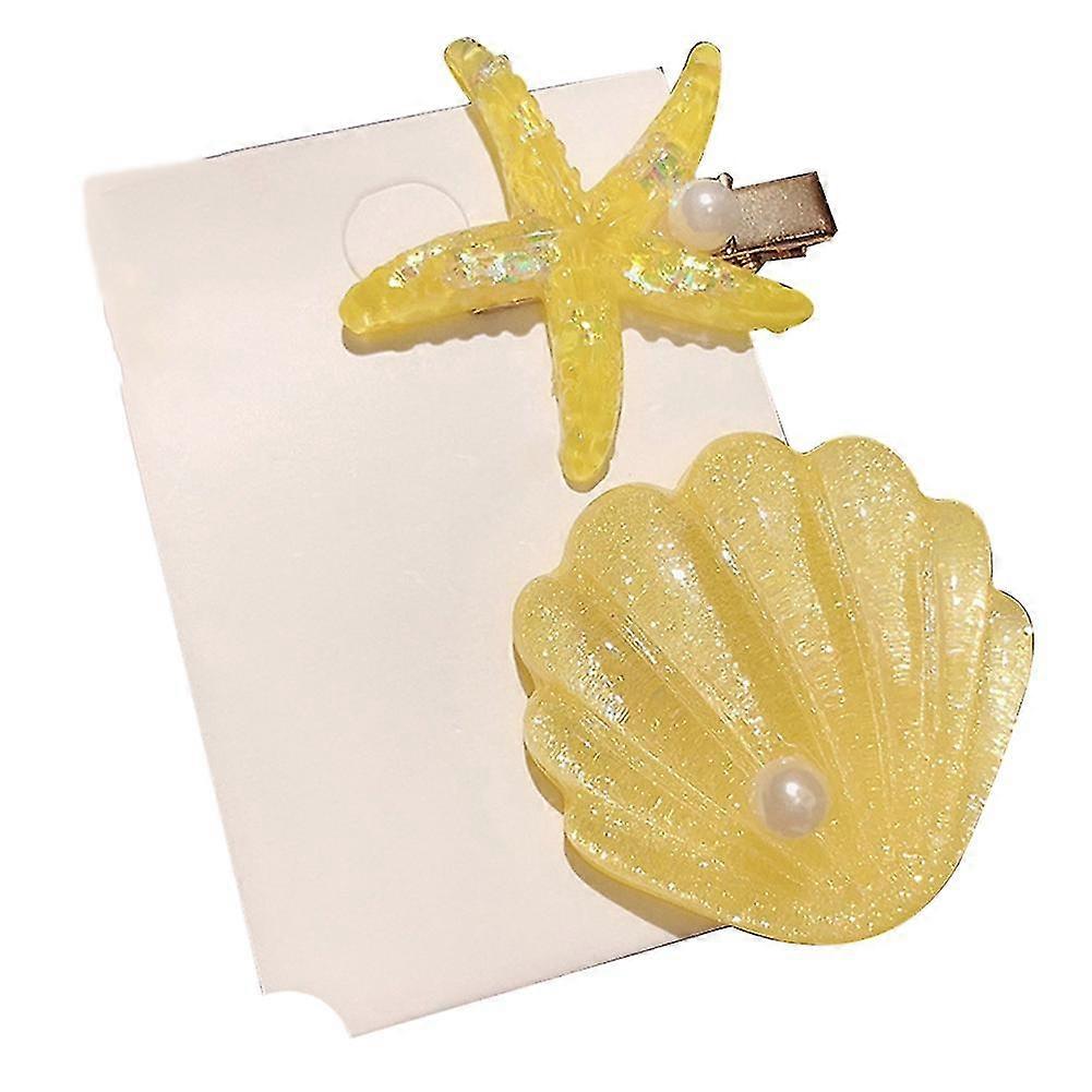 2pcs/set Starfish Shell Faux Pearl Inlaid Hairpin Women Hair Clip