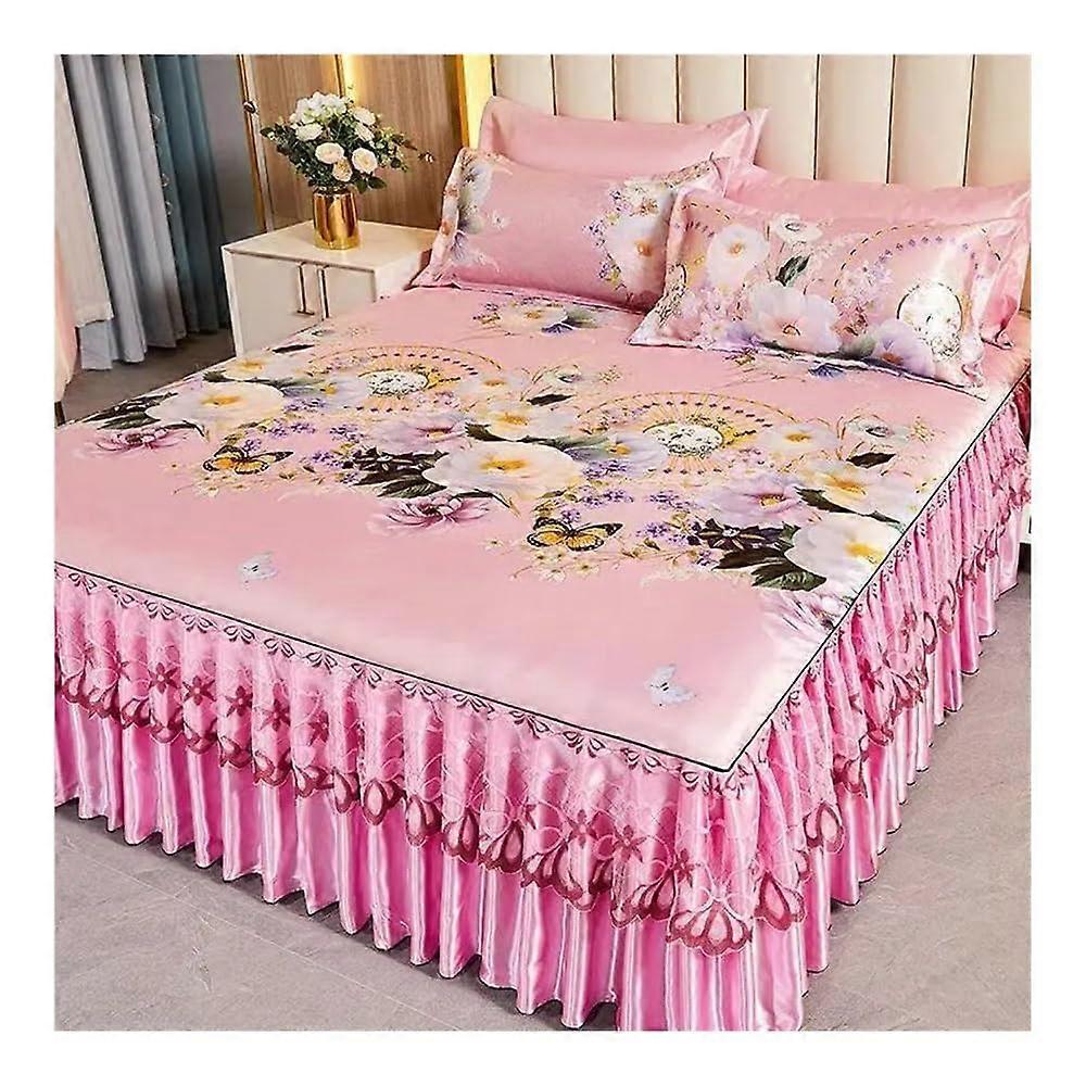 3piece bedding set for double bed, classic lace, royal blue, bed sheet, valance, machine washable Ref: 5476