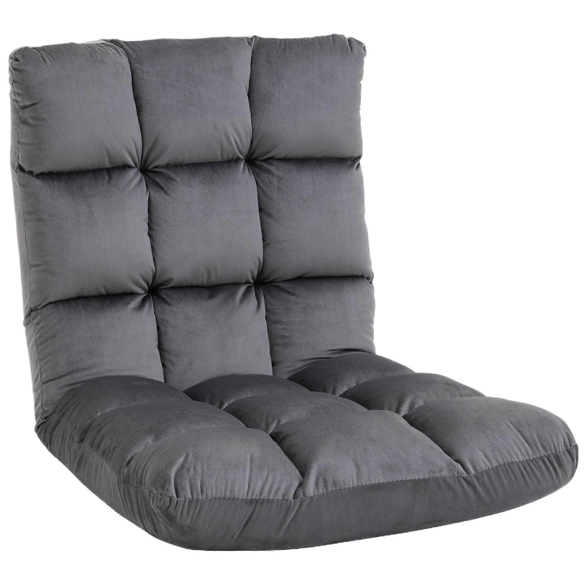 3 In 1 Foldable Floor Chair 13 Position Backrest Gray Cushion Foam Seat