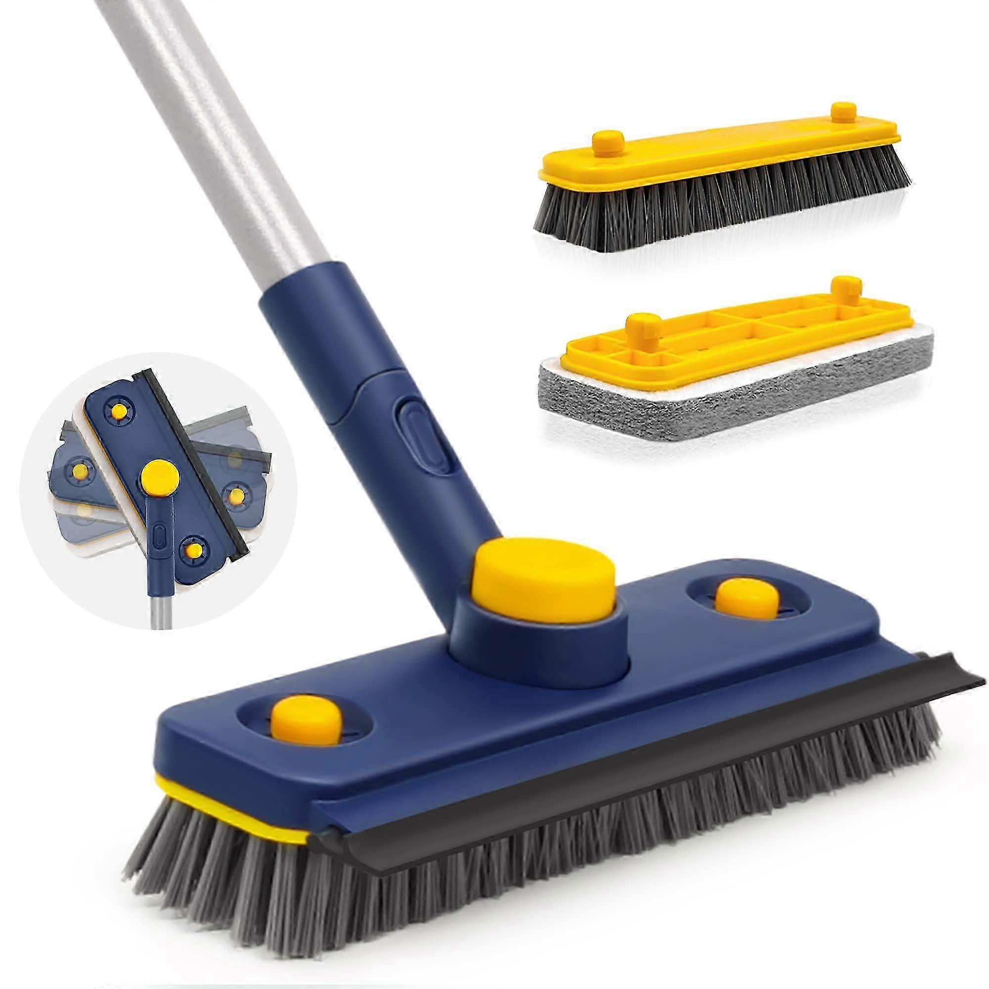 3-in-1 Tub Tile Scrub Brush with 360° Swivel Head & Long Handle for Shower, Sink, Floor Cleaning