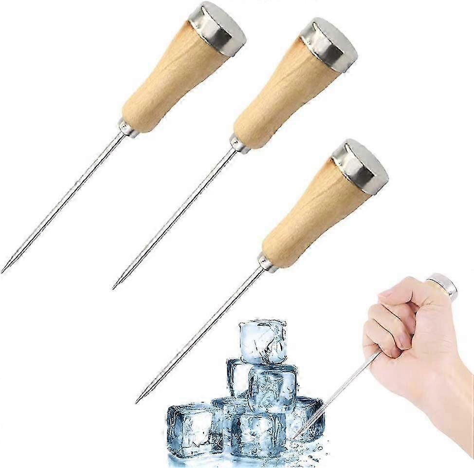 3pcs Ice Picks Stainless Steel with Safety Wooden Handle 8.5in
