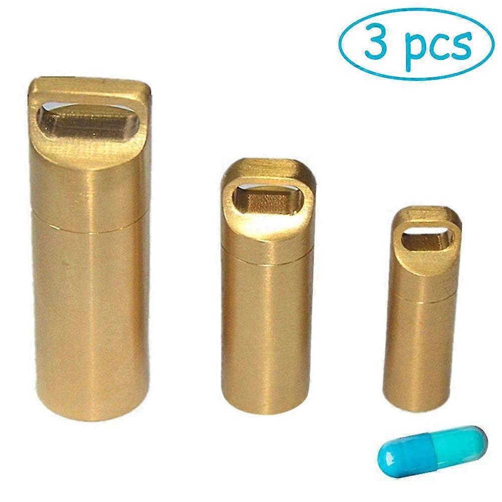 3pcs/set Brass Pill Box Keychain Waterproof Pill Box Keyring for Outdoor Travel Survival