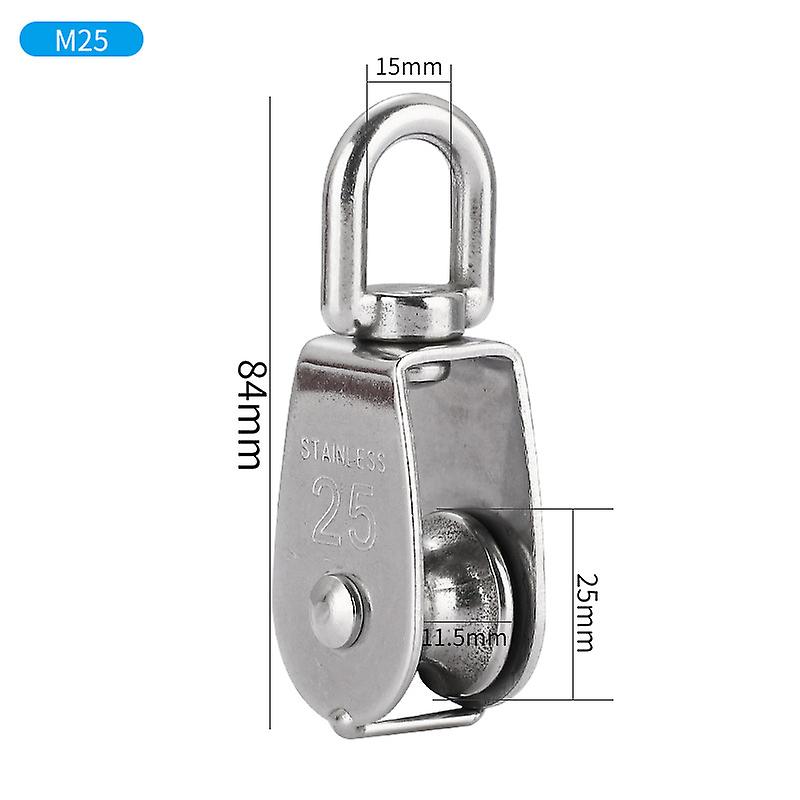 304 Stainless Steel Lifting Wheel Ring Single Wheel Double Wheel Fixed Wire Rope Traction Pulley U Shape Rotating Wheel - (25 Single Wheels) - 5pcs