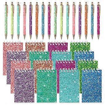 32 Pcs Glitter Pens and Notebook for Kids Party Gift Glitter Mini Notepad Pocket Notebook Fancy Pens