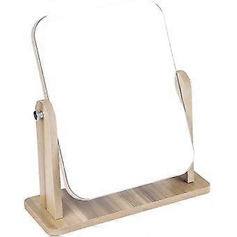 360 Degree Rotatable Wooden Makeup Mirror with Stand High Transparency Rectangular Mirror