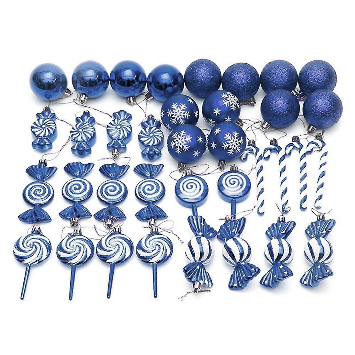 36Pcs Christmas Ball Christmas Tree Hanging Pendants Printed Shaped Pendant Christmas Spheres Dark Blue