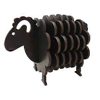 3D Puzzle Shape Sheep,Wooden Coasters for Drinks, Black