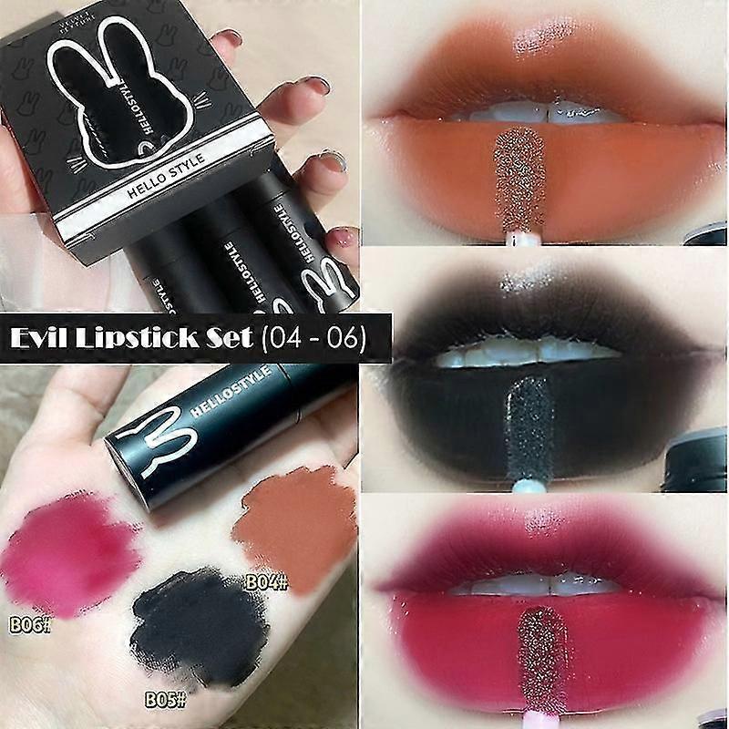 3pcs Punk Gothic Black Lipstick Matte Waterproof Liquid Lipstick