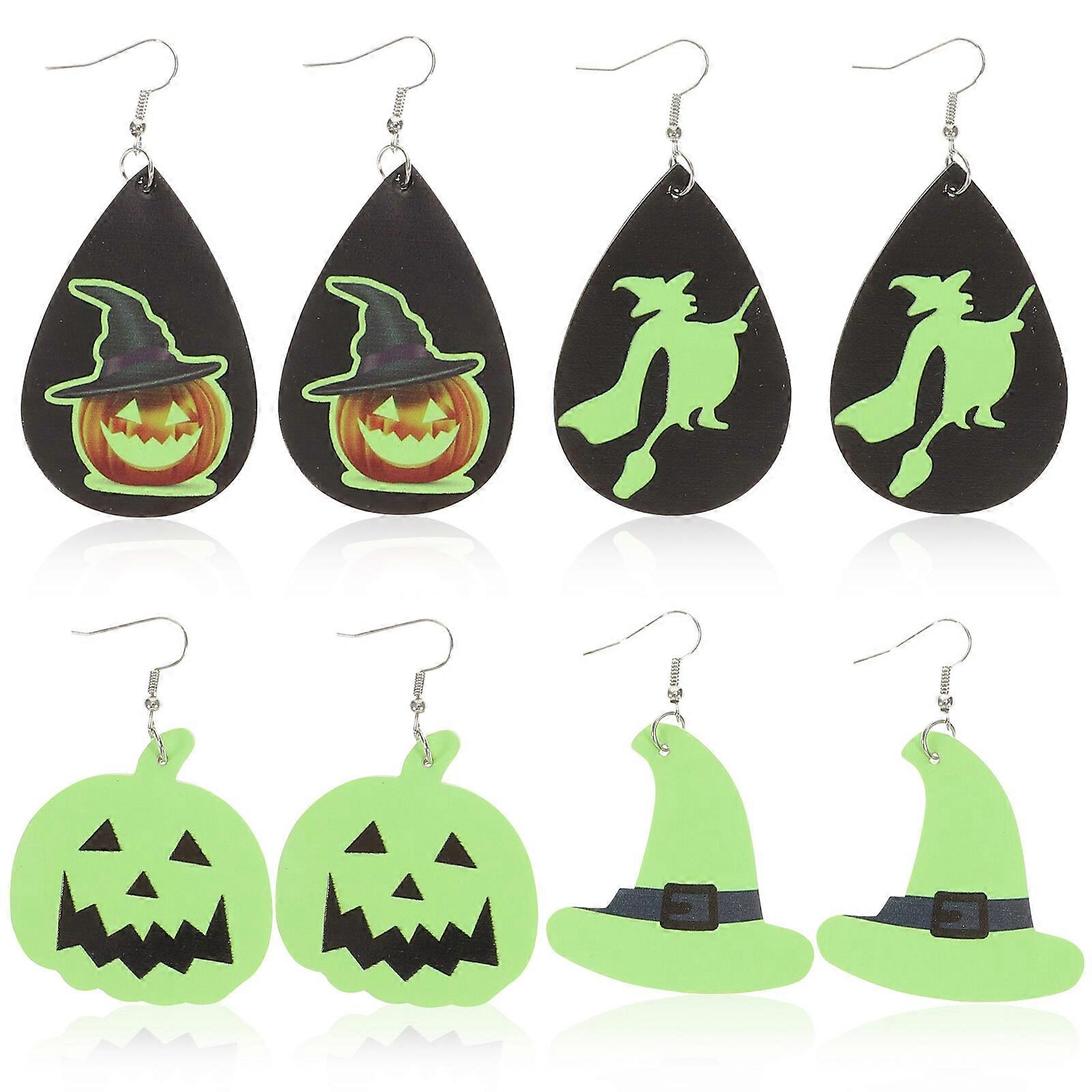 4 Pairs Halloween Leather Earrings Fashion Dangle Drop Earrings for Women Girls