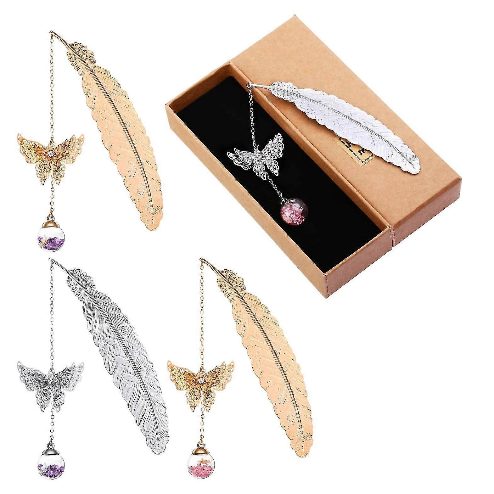 4 Pcs Metal Feather Bookmarks, Graduate Student Reading Page Markers Bookend Pendant Bookmark Beaut