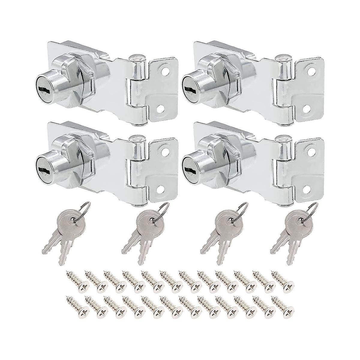 4 Pcs Keyed Hasp Locks 2.5 Inch Twist Knob Keyed Locking Hasp, Metal Safety Hasp Latches Keyed Diff