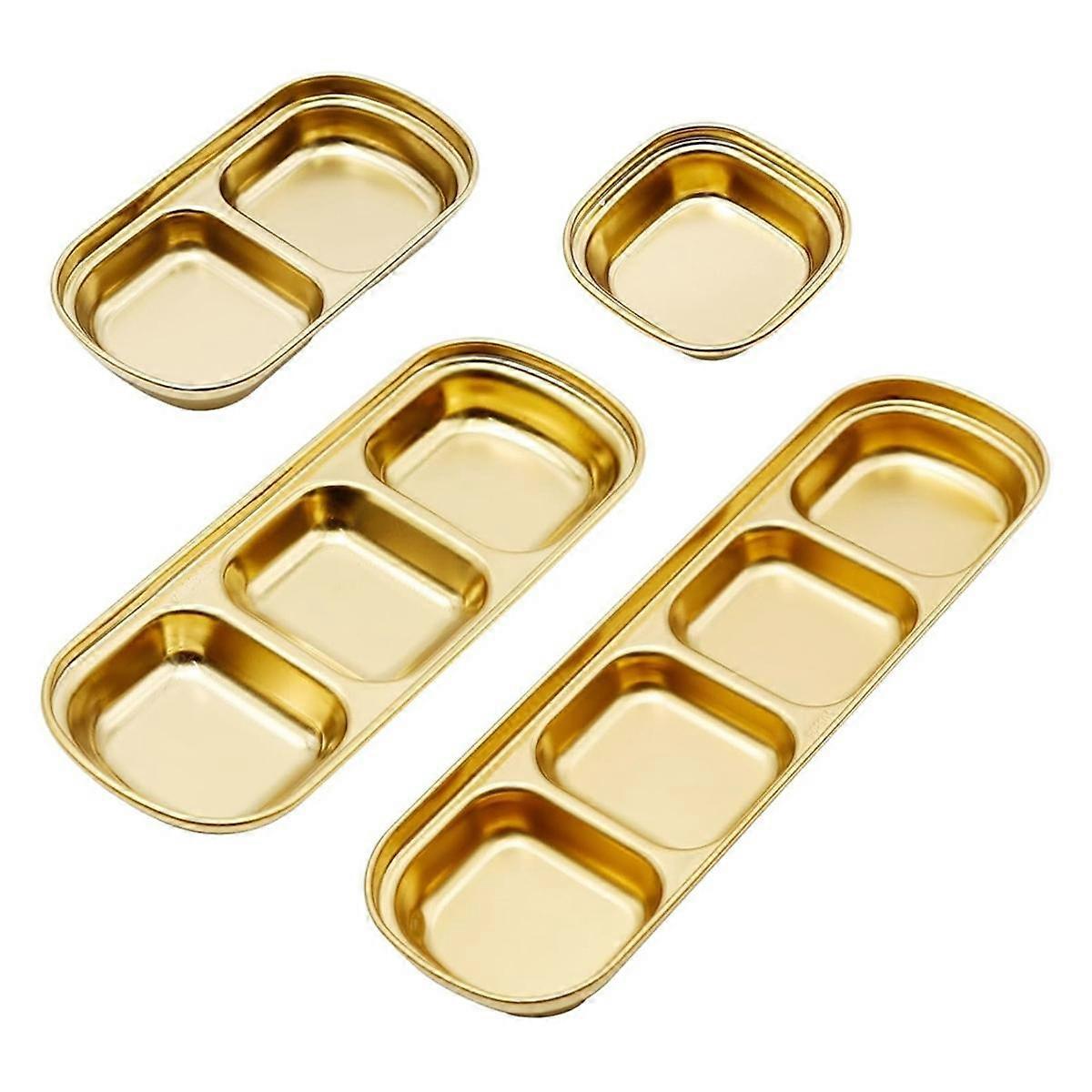 4 Pcs Stainless Steel Sauce Dish, Divided Seasoning Soy Sauce Dipping Plate, Ketchup Dipping Bowls,Gold