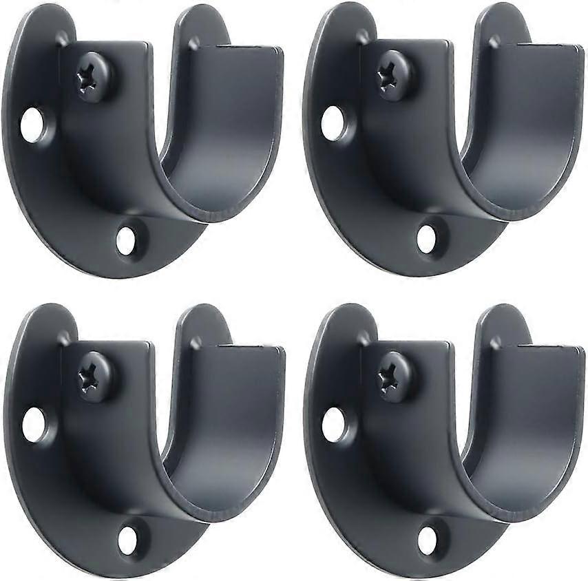 4Pcs Closet Pole Sockets U Shaped Flange Rod Holder Heavy Duty Closet Rod End Supports, Dia 26mm, Stainless Steel Matt Black