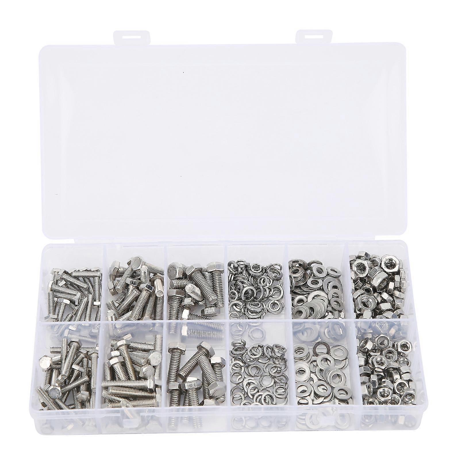 475pcs 304 Stainless Steel Screw Hex Bolts Nuts Gasket M4/5/6 Assortment Set Box 26s