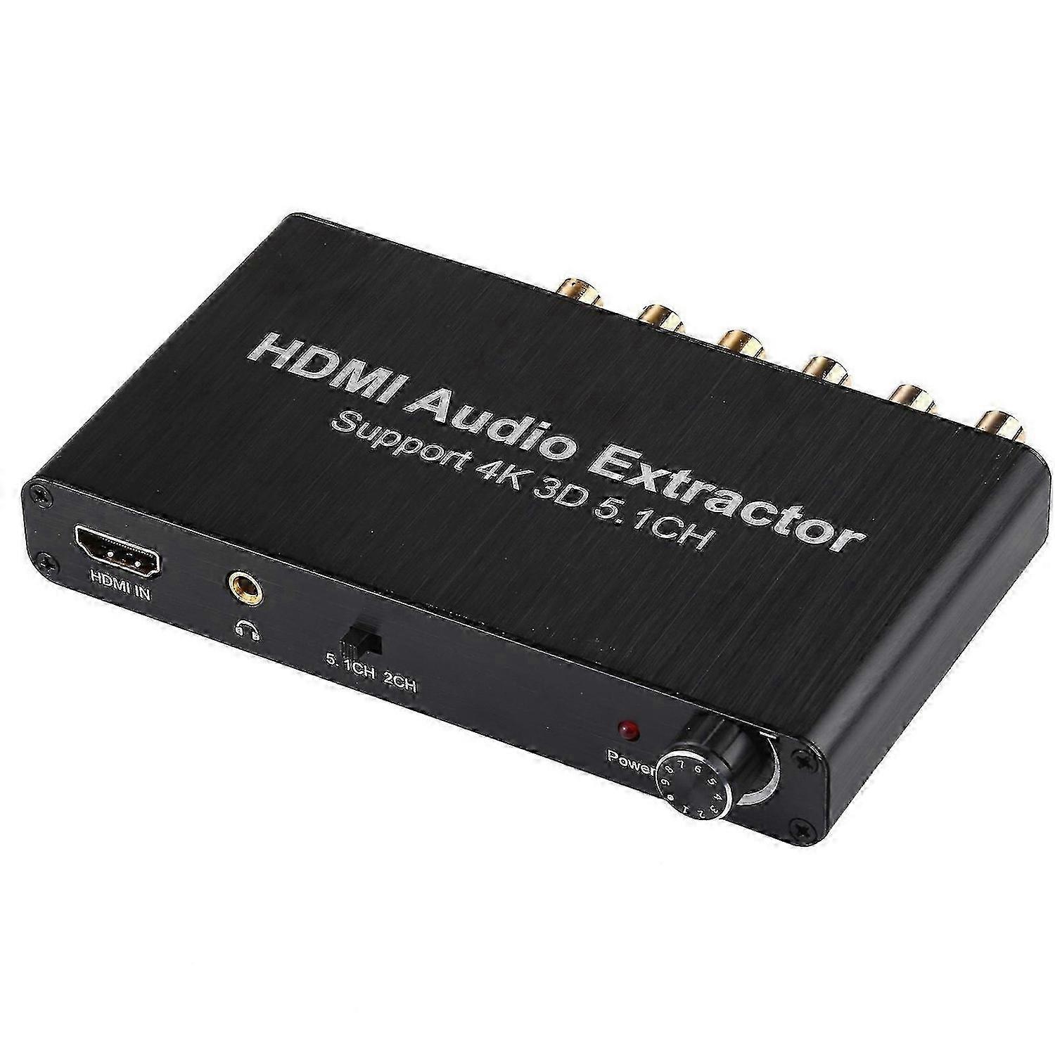 Usage Tips:4K 3D HDMI 5.1CH Audio Decoder Extractor<br> 1. Built in high performance RTOS operating system and audio decoder chip, support DTS AC-3.<br> 2. Super fast start time about 3 seconds.<br> 3. HDMI iutput, 1 x CEN, 1 x SW, 1 x FL, 1 x FR, 1 x SL, 1 x SR, 3.5mm headphone port.<br> 4. HDMI input resolution: Up to 3840x2160 30Hz; 4096x2160 30Hz.<br> 5. HDMI to achieve audio signal decoding synchronization. There are PASS 2.0CH 5.1CH three audio mode options.<br> 6. Support 6CH volume synchronous adjustment.<br> 7. Auto decode AC-3DTS (LPCMPCMRAW) input signal without any action.<br> 8. Compatible with network player, HDTV, Blu-ray DVD, DVD, PS4, Xbox 360, DM500S, DM800HD etc.<br> 9. Small size and metal case, anti-interference.<br> 10. Adopt 6CH RCA 3.5mm headphone port output, convenient and efficient in use.