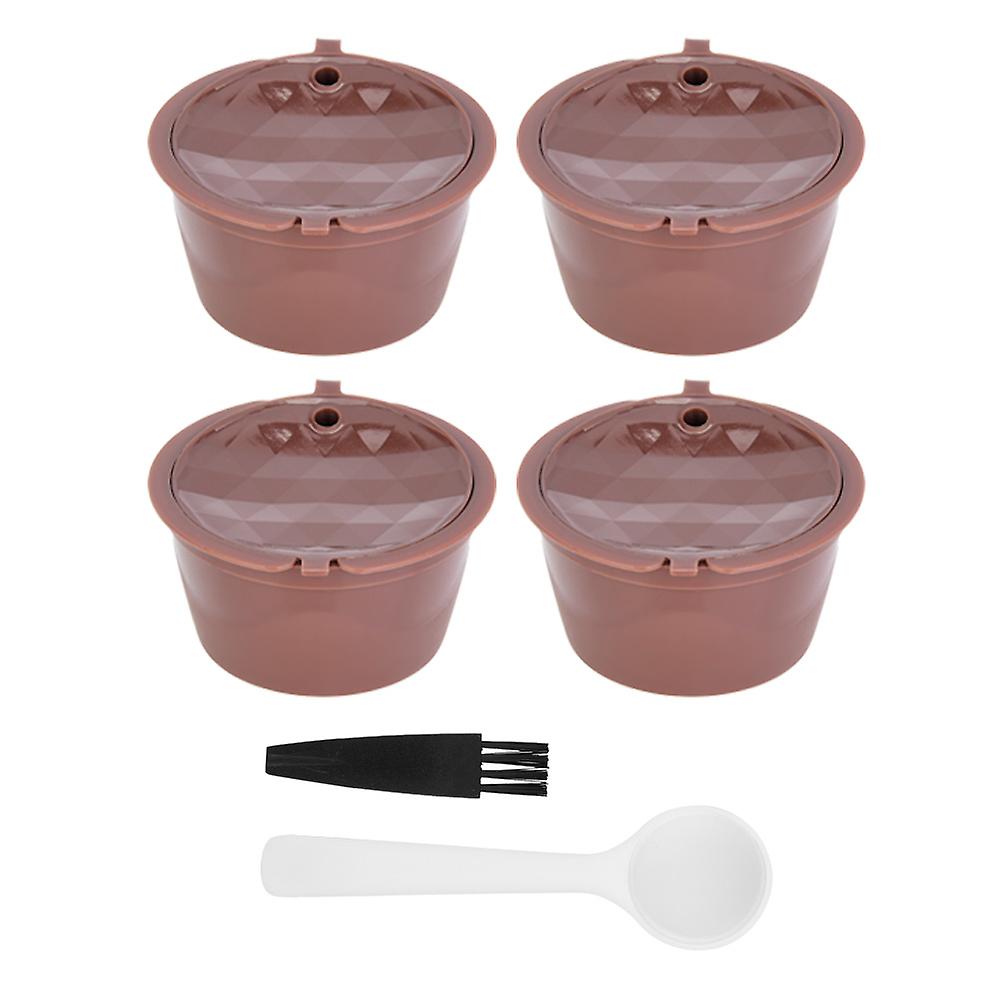 4pcs Reusable Refillable Coffee Capsules Pod Filter Cups Strainer Brown