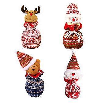 4pcs Christmas Knitting Gift Pouch Candy Bag Apple Storage Drawstring Bags