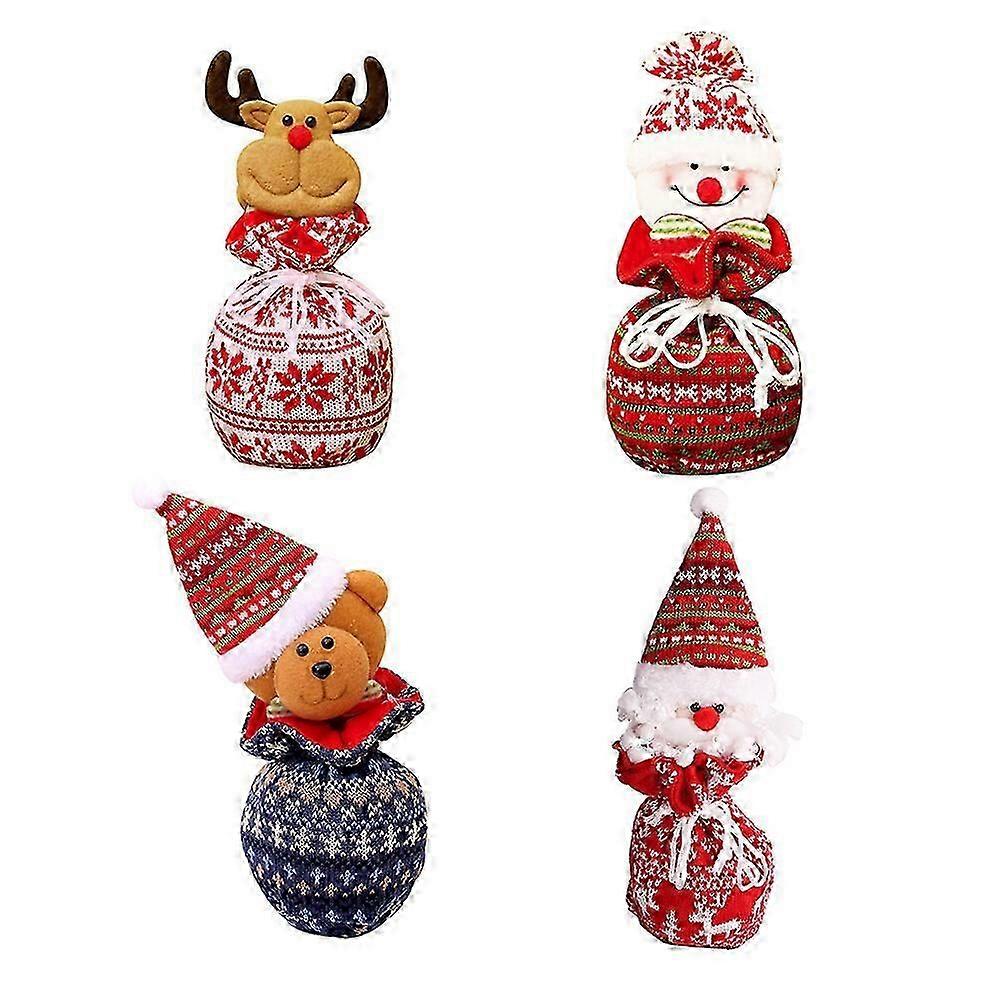 4pcs Christmas Knitting Gift Pouch Candy Bag Apple Storage Drawstring Bags