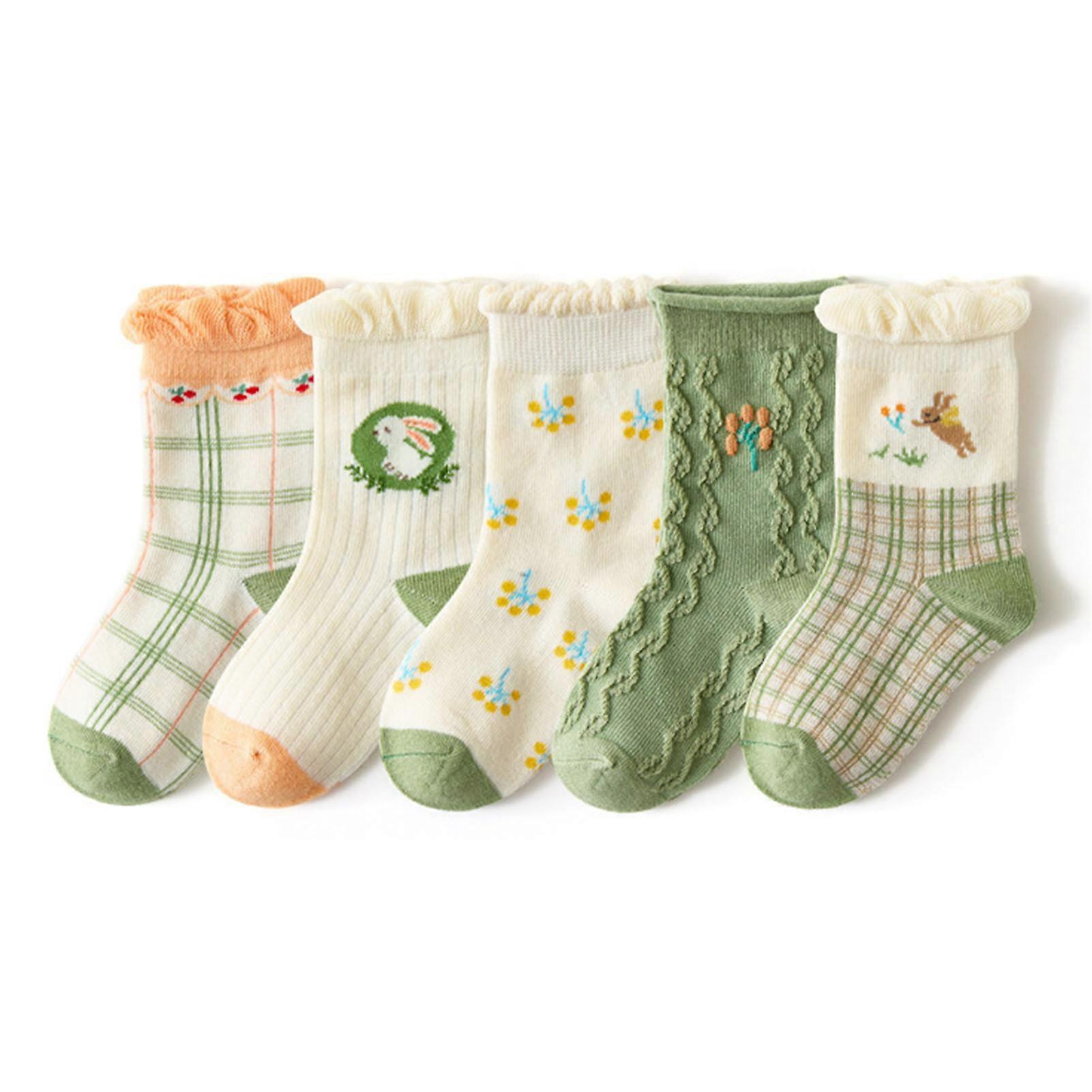 5 Pair Crew Toddler Socks Pure Color Mid Calf Soft Cotton Socks for Autumn Winter