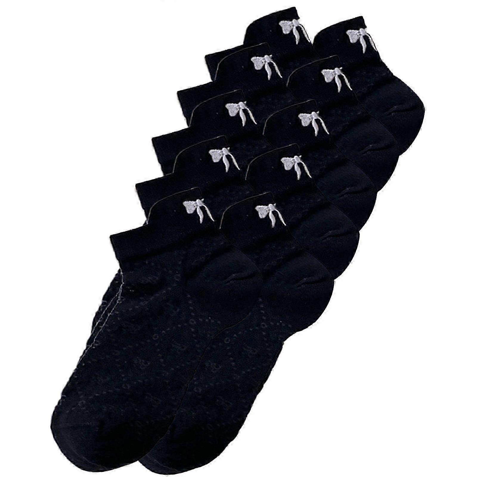 5 Pairs Women Low Cut Thin Breathable Cotton Ankle Socks Sweet Embroidery Bowknot Back Heel Hollowed Out Mesh Boat Socks Yellow
