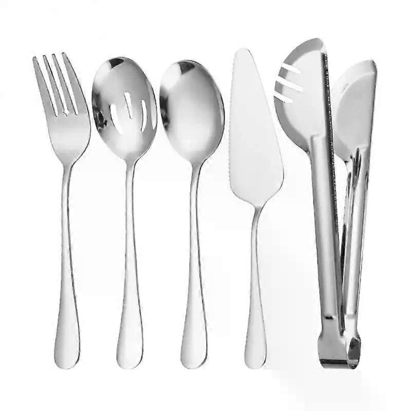 5Pcs/Set Stainless steel communal food serving spoon Colander serving spoon Communal tableware set suitable for family dinners