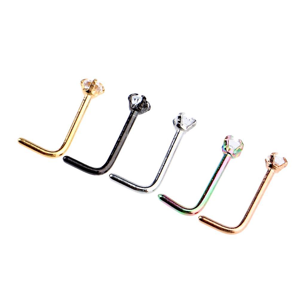 5 Pieces Stainless Steel L Shaped Nose Stud Rings Bar Body Piercing 20g