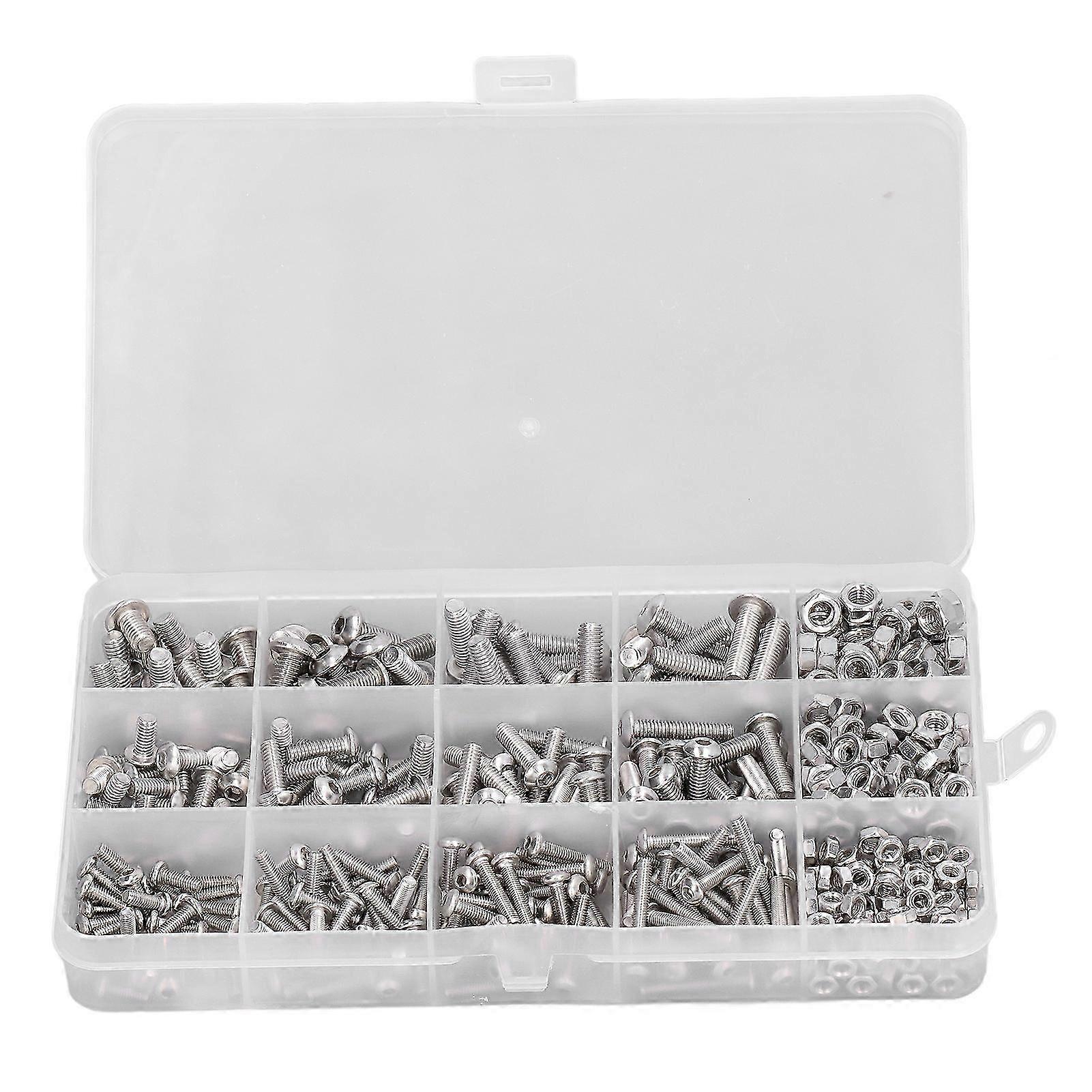 500Pcs Hex Round Screws Nuts 304 Stainless Steel Assortment Set Boxed Kit M3 M4 M5 Compatible