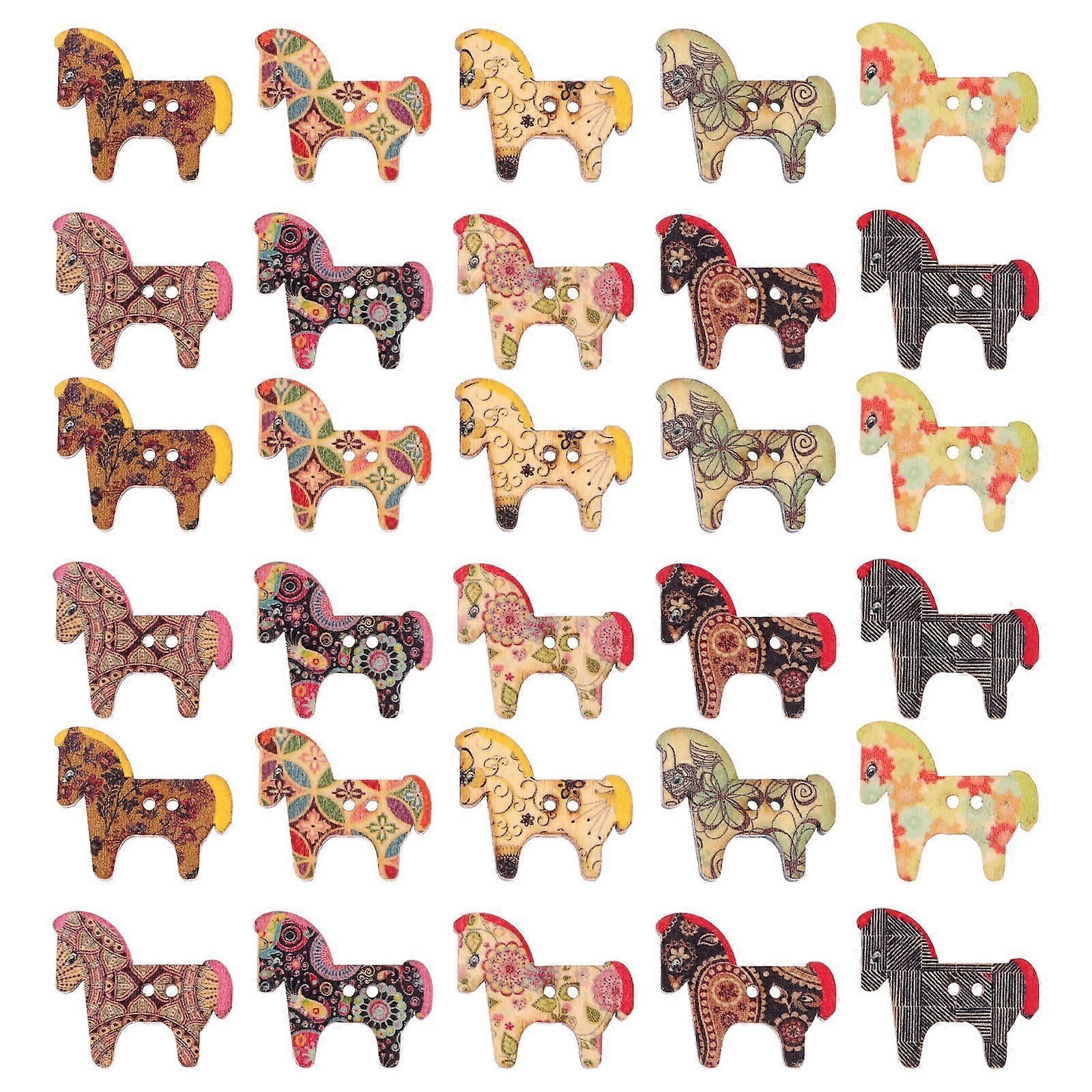 50pcs Adorable Painted Pony Shaped Wooden Buttons Decorative Clothing Buttons