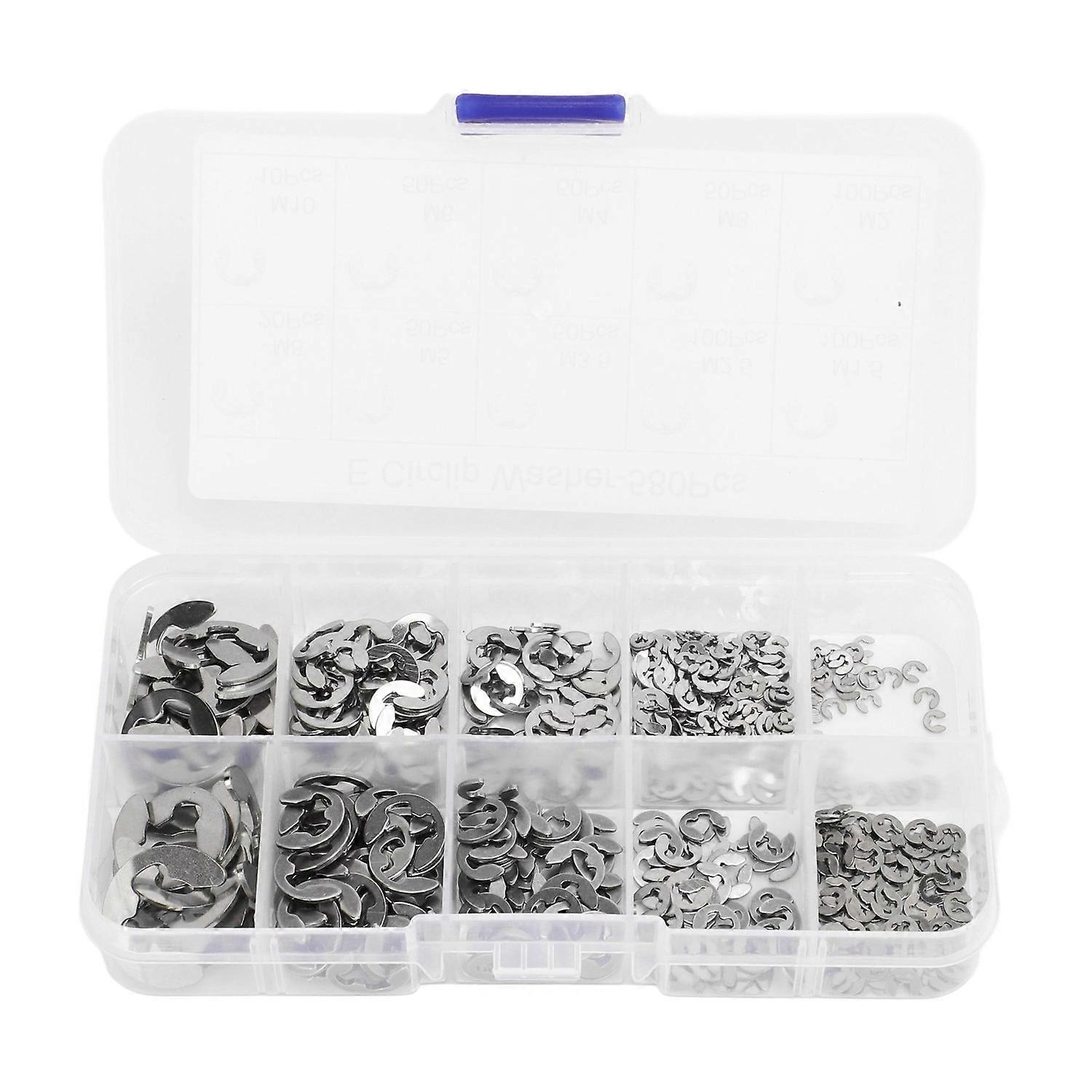 580Pcs E Circlip Washer Set with Storage Box Stainless Steel Firm Fixing E Type Retaining Washer Sil