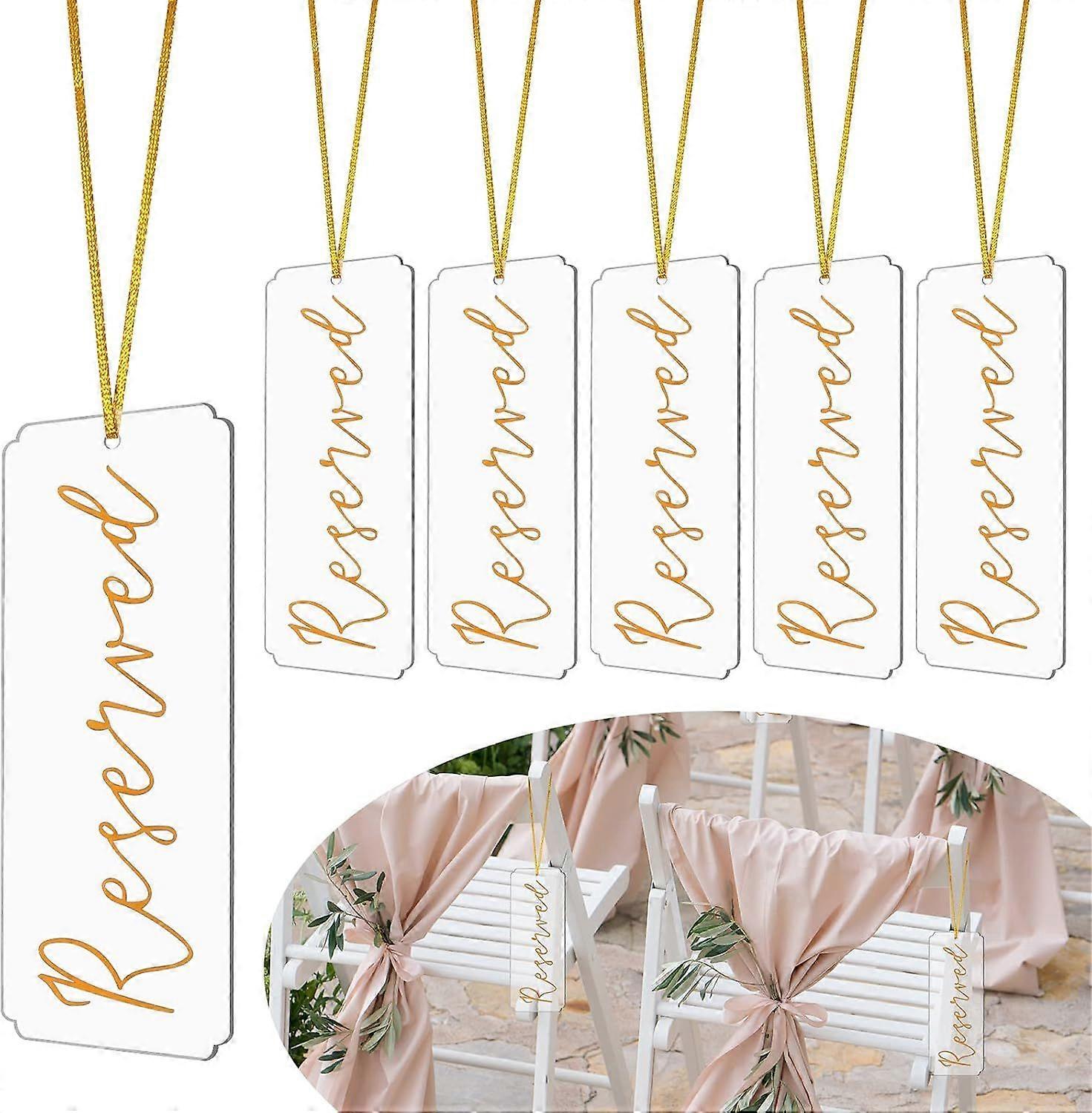 6 Piece Set Acrylic Reserved Signs for Wedding Chairs, Reserved Seating Signs