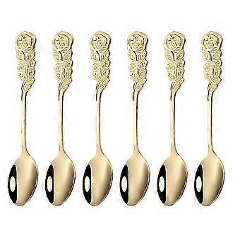 6 stk rustfrit stål kreativ teskefuld delikat rose design ske rør service