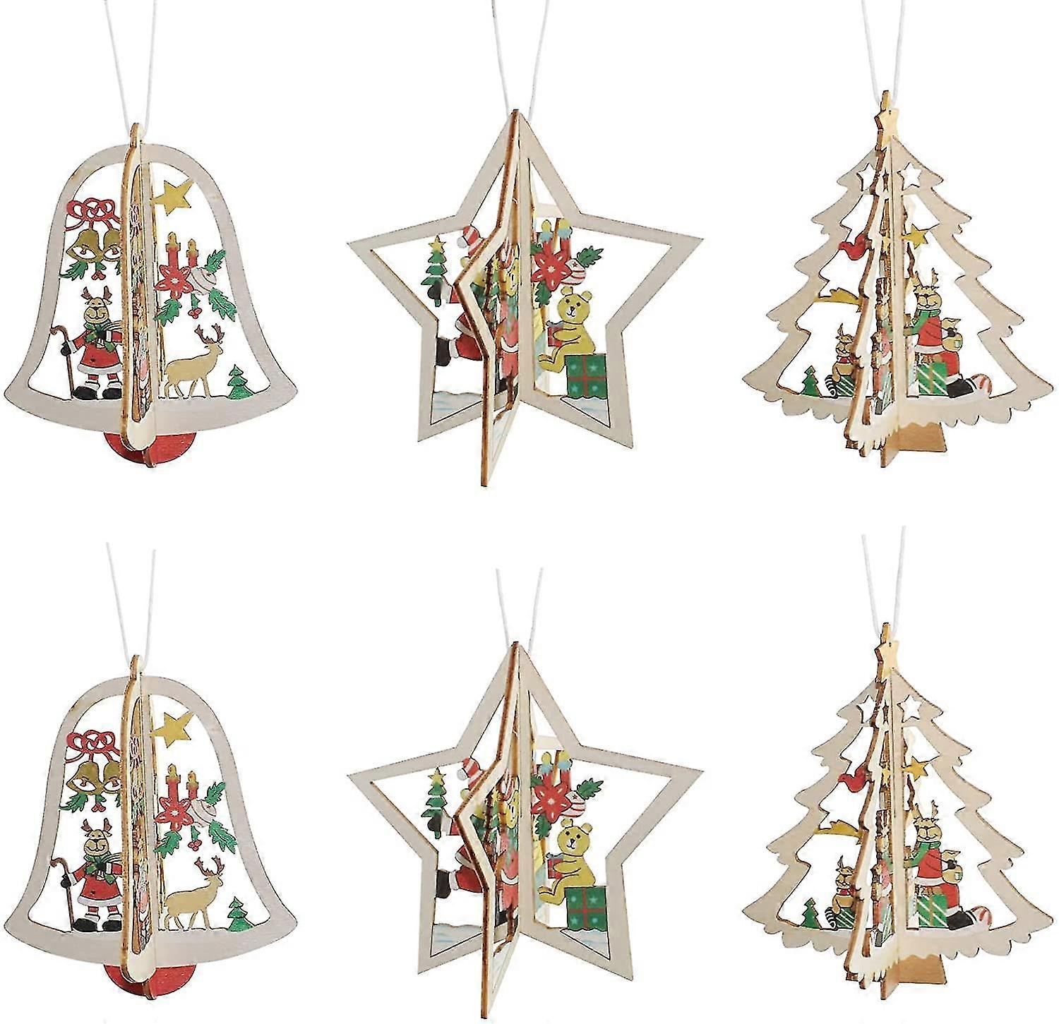 6 Pieces Christmas Diy Wooden 3d Pendant Wooden Christmas Ornaments Wooden Christmas Tree Decoration
