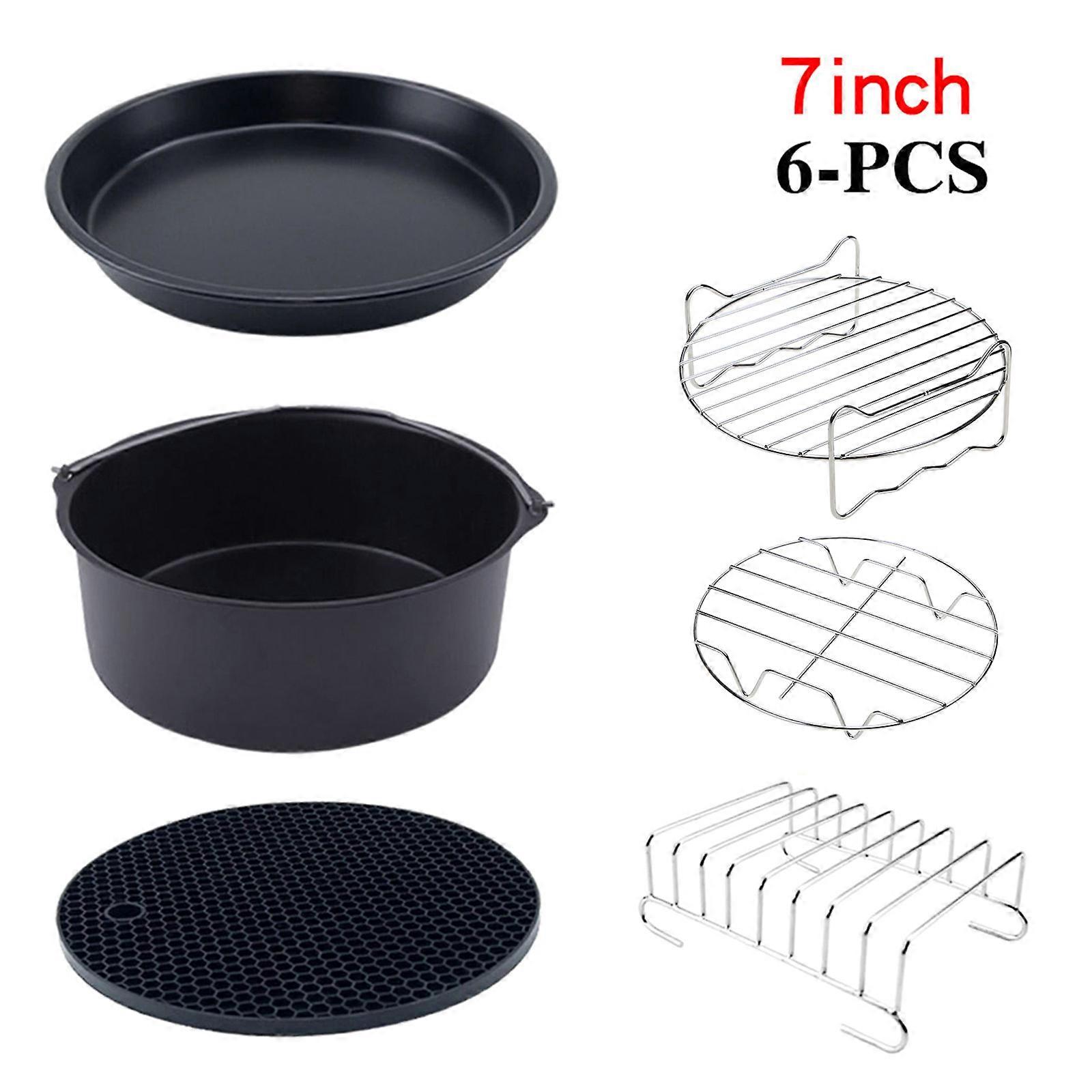 6pcs/set 7 Inch Pizza Pan Air Fryer Accessories Baking Grill Rack Cake Barrel Steamer Pot Holder Tool Parts