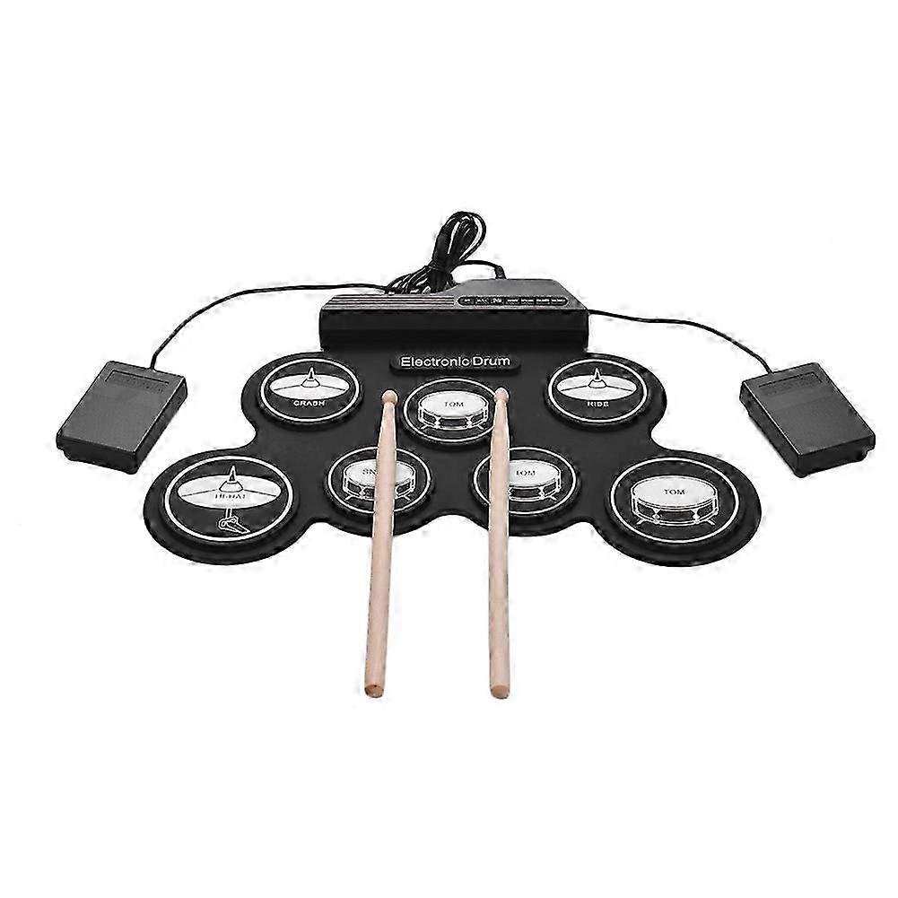7 Pads Electric Drum Set, Portable Roll Up Drum Kit with Pedals and Sticks, Gift for Kids and Adults