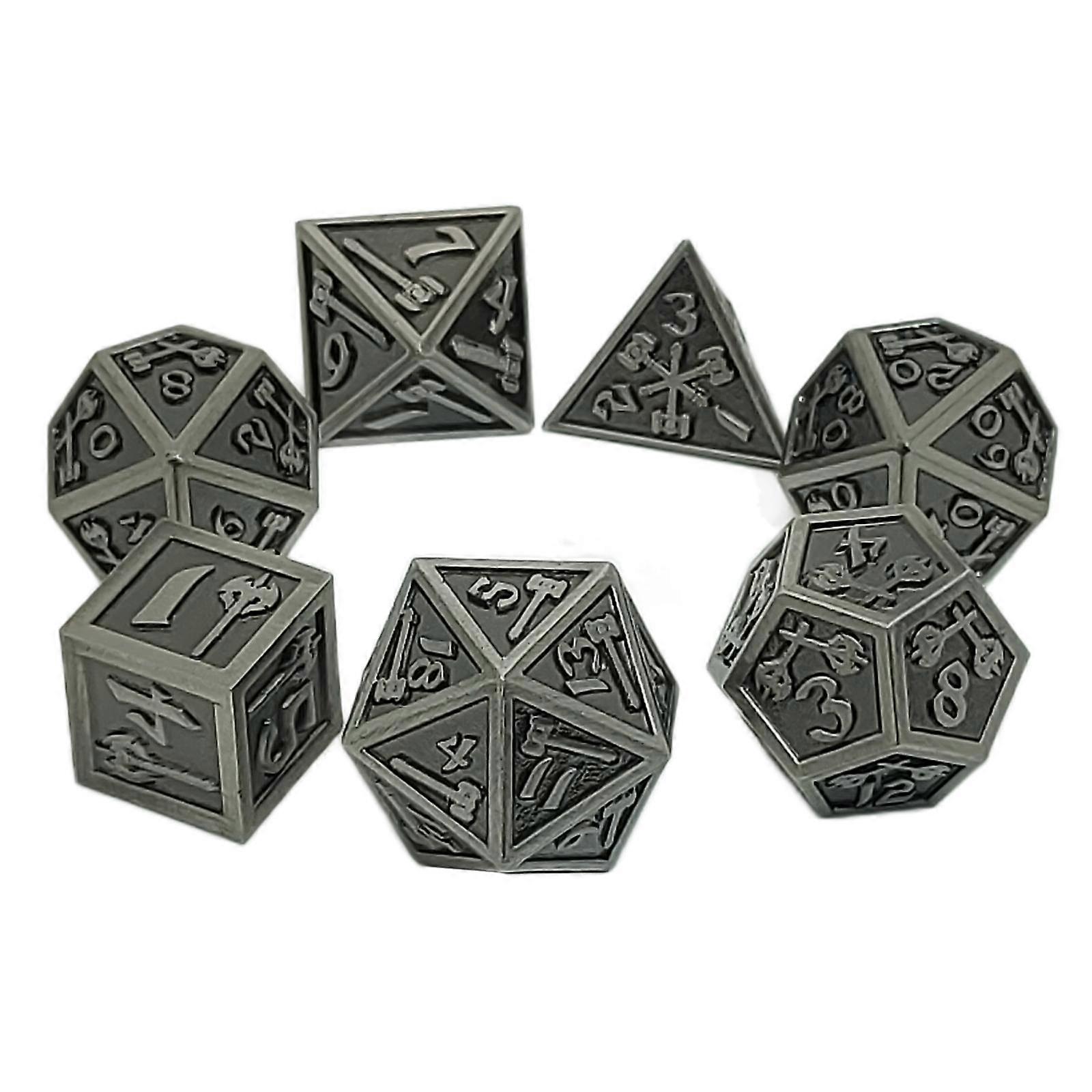 7x Metal Polyhedral Dices D20 D12 D10 D8 D6 D4, for Entertainment Gifts Black