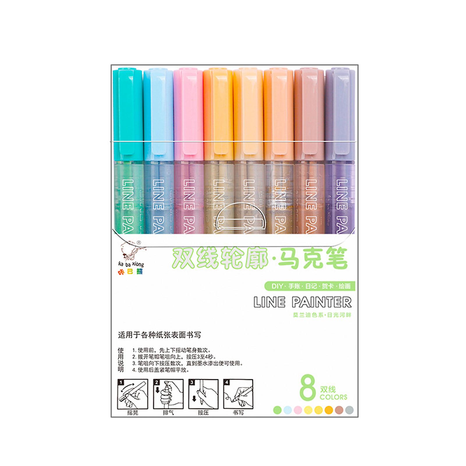 8 Colored Double-line Contour Highlighter Quick Dry Mark Notes Highlighter For Kids & Adults Back To School Supplies