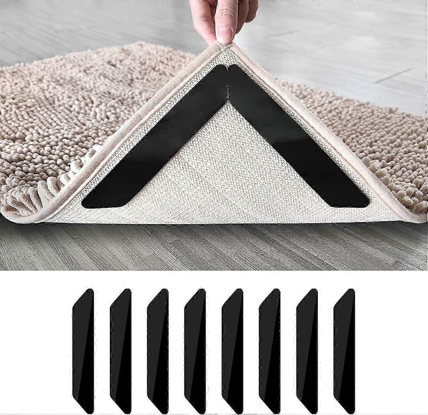 8 PCS Reusable Washable Rug Tape - Double Sided Non-Slip Pads for Hardwood Floors & Area Rugs - Black